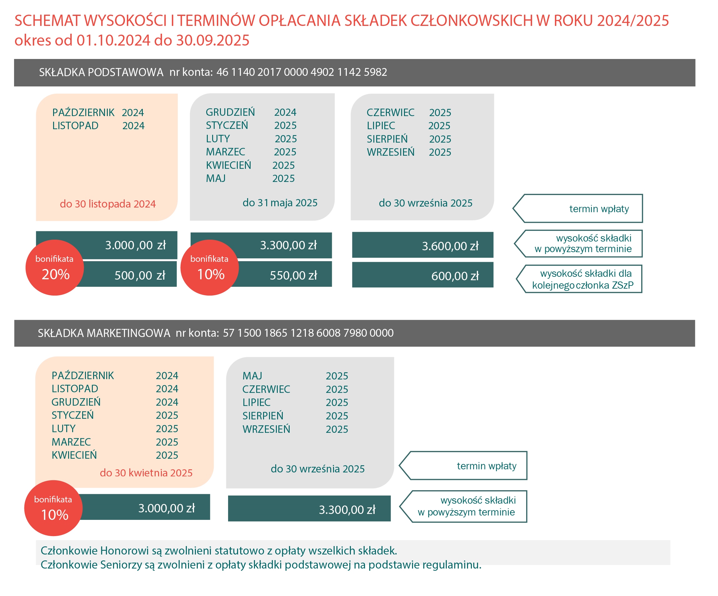 Prosimy o terminowe wpłaty składek na właściwe konta bankowe.